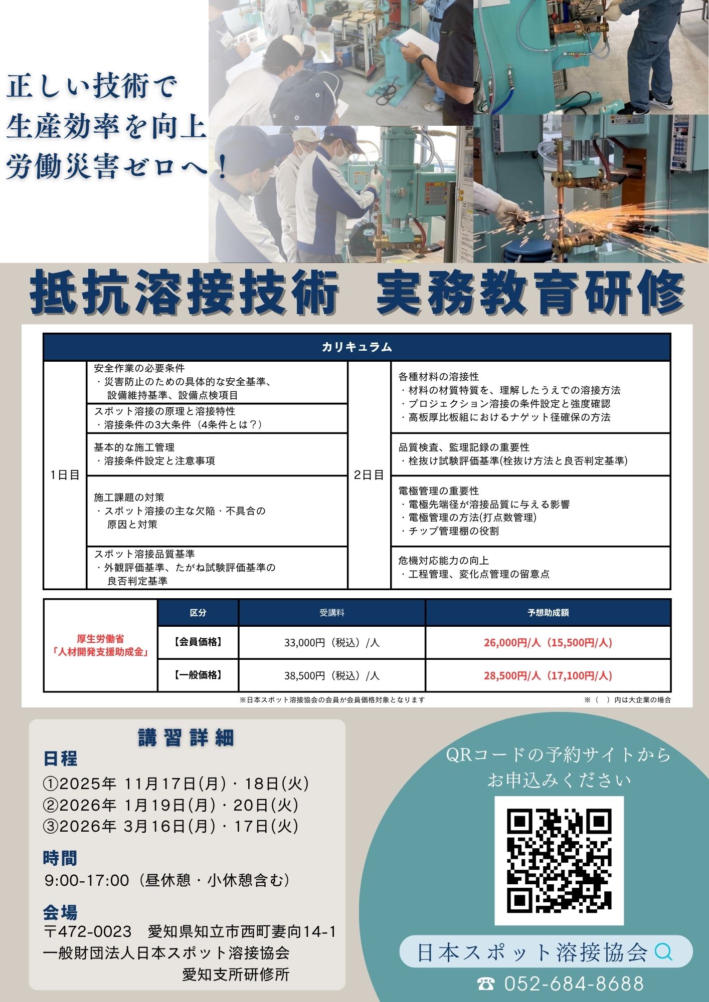 2025.02.21 抵抗溶接技術 実務教育研修のご案内掲載 2025年3月から6月実施分